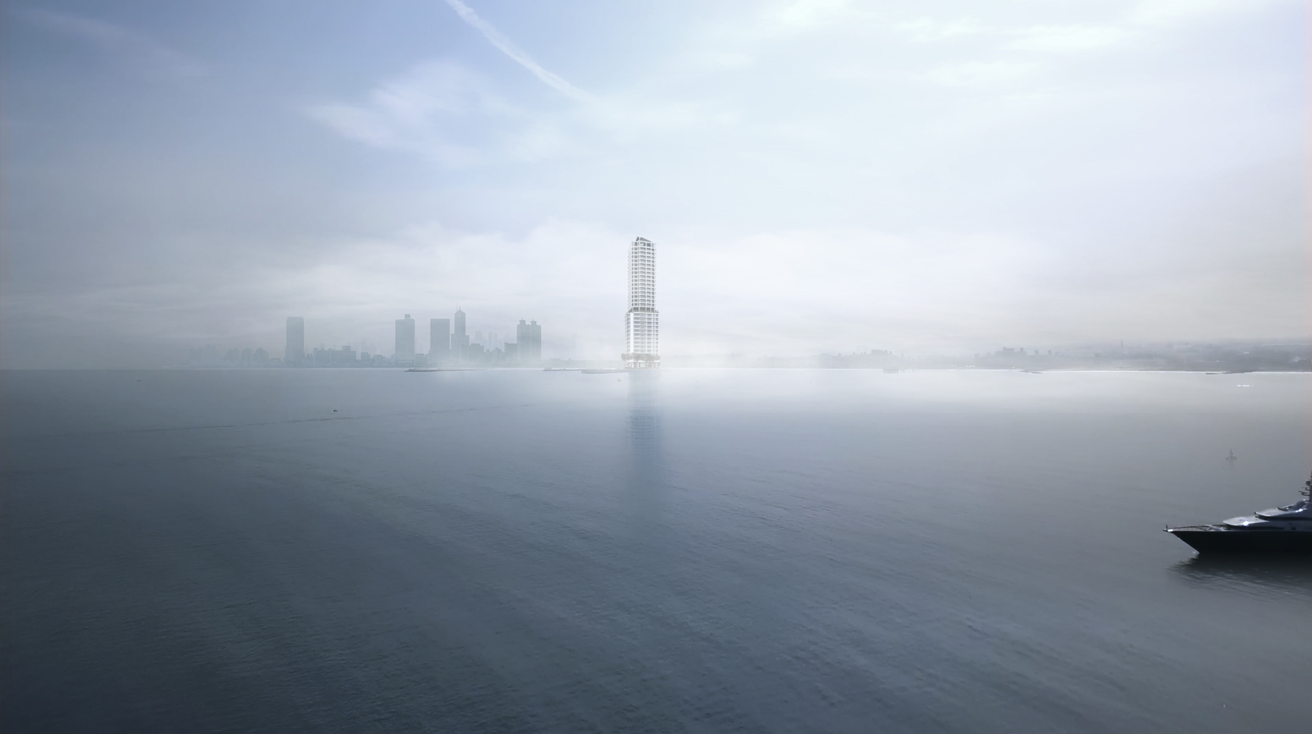 這河面上掩映的城市天際